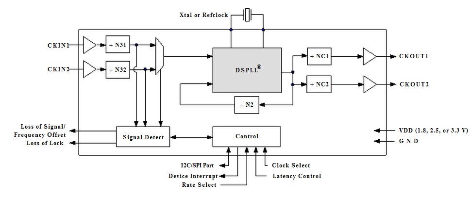 ![]() Phase Locked Loops (PLL) ANY-RATE CLK MULT JITTER ATTEN 2 OUTS |